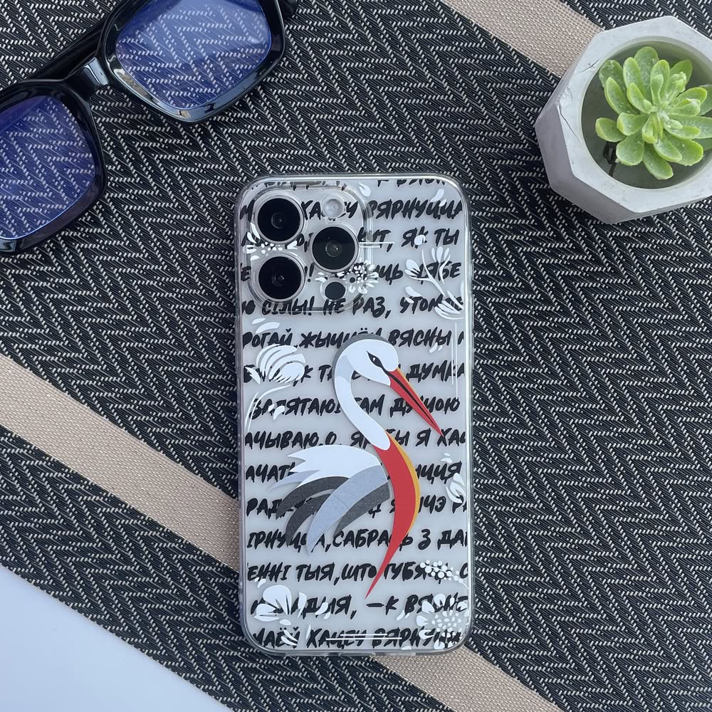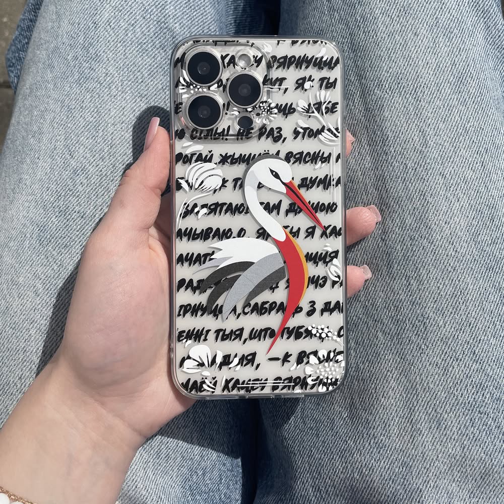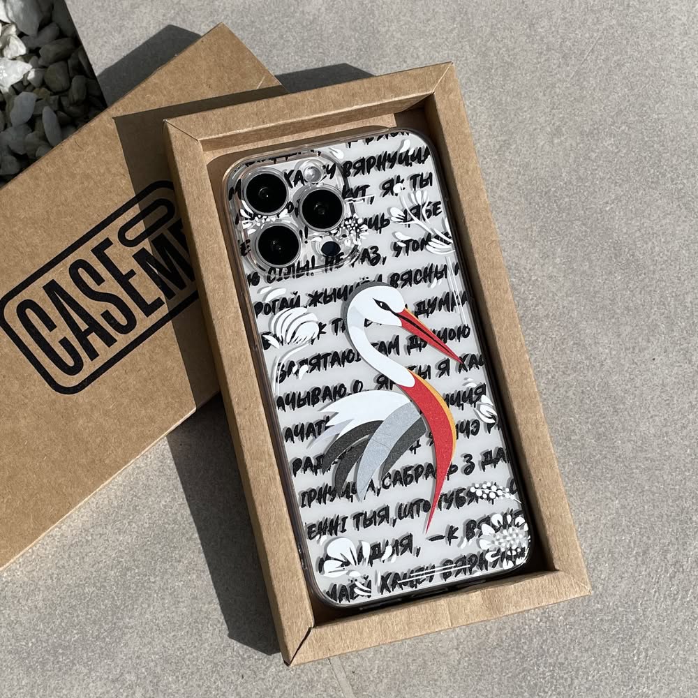 Технология печати: для печати данного дизайна мы используем прямую уф-печать. Она позволяет с высокой точностью передать и тонкий рукописный шрифт на фоне, и яркие акценты на фигуре аиста.
