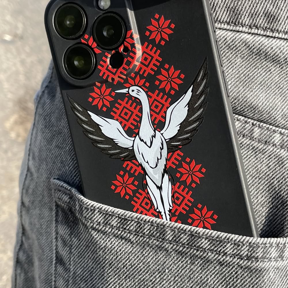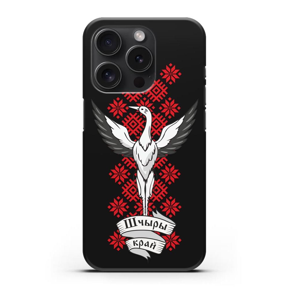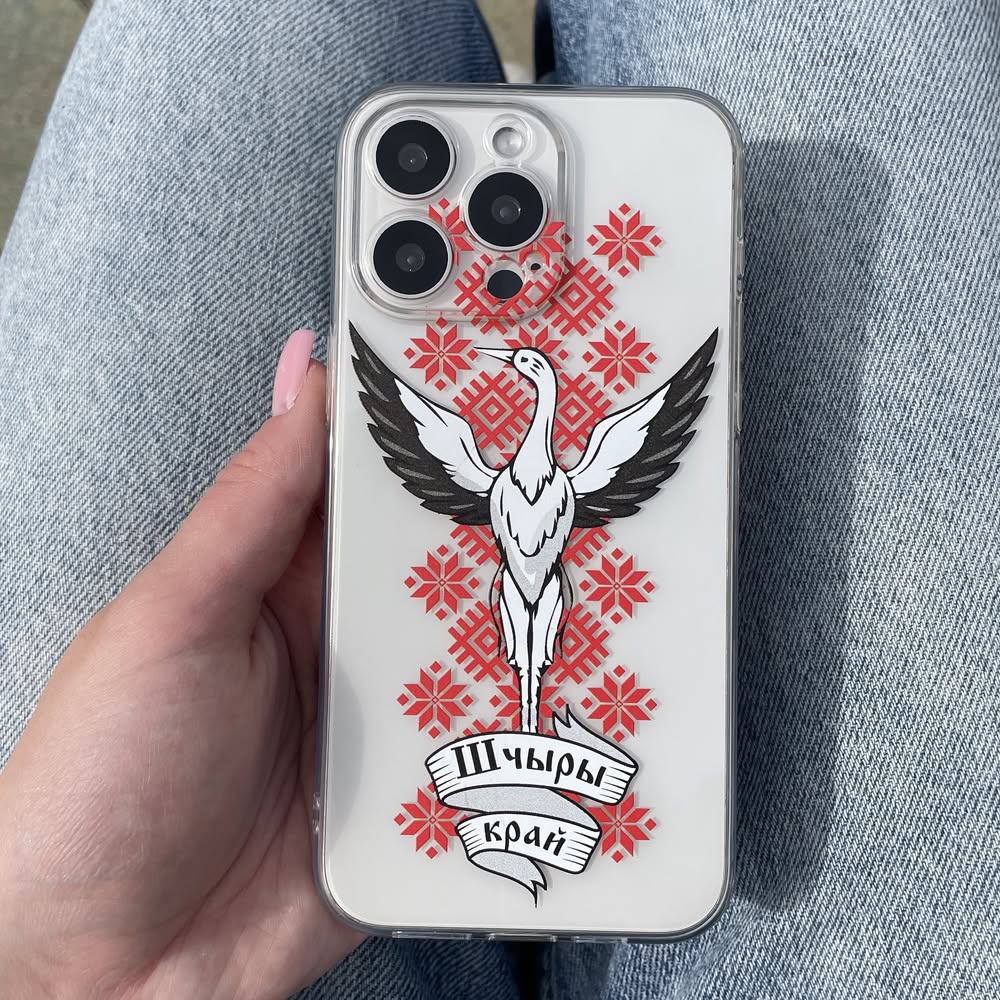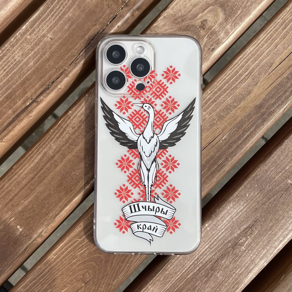 Аист (бусел) — один из самых узнаваемых родных символов Беларуси. Он олицетворяет мир, семейное благополучие и верность родной земле. В дизайне величественная птица расправляет крылья на фоне традиционного красного орнамента, а надпись «Шчыры край» завершает композицию, превращая чехол в мощное патриотическое высказывание. Данный аксессуар для тех, кто испытывает искреннюю любовь к Беларуси.